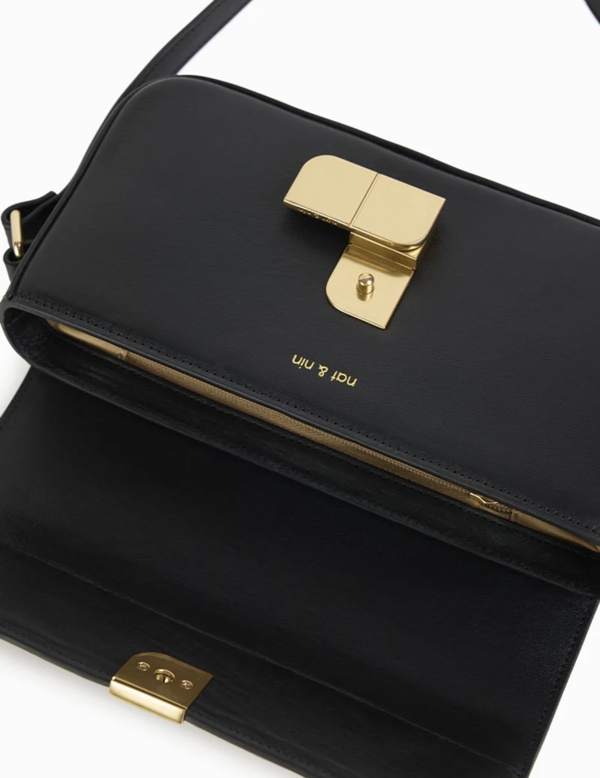 De Alice Small van Nat & Nin is een compacte en functionele baguette-vormige tas. Dankzij de rechthoekige vorm en het strakke design kan de tas over de schouder of als crossbodytas gedragen worden, met behulp van een verstelbare leren schouderband met drukknopen. De kenmerkende Nat & Nin-sluiting geeft de tas een eigentijdse en stijlvolle touch.
