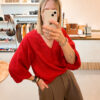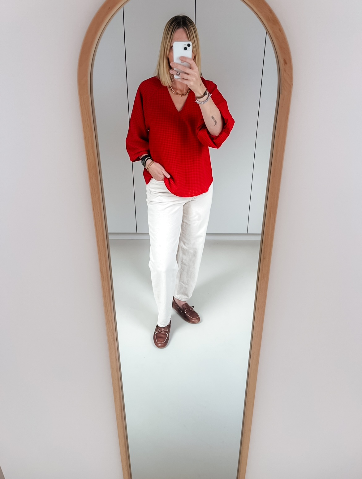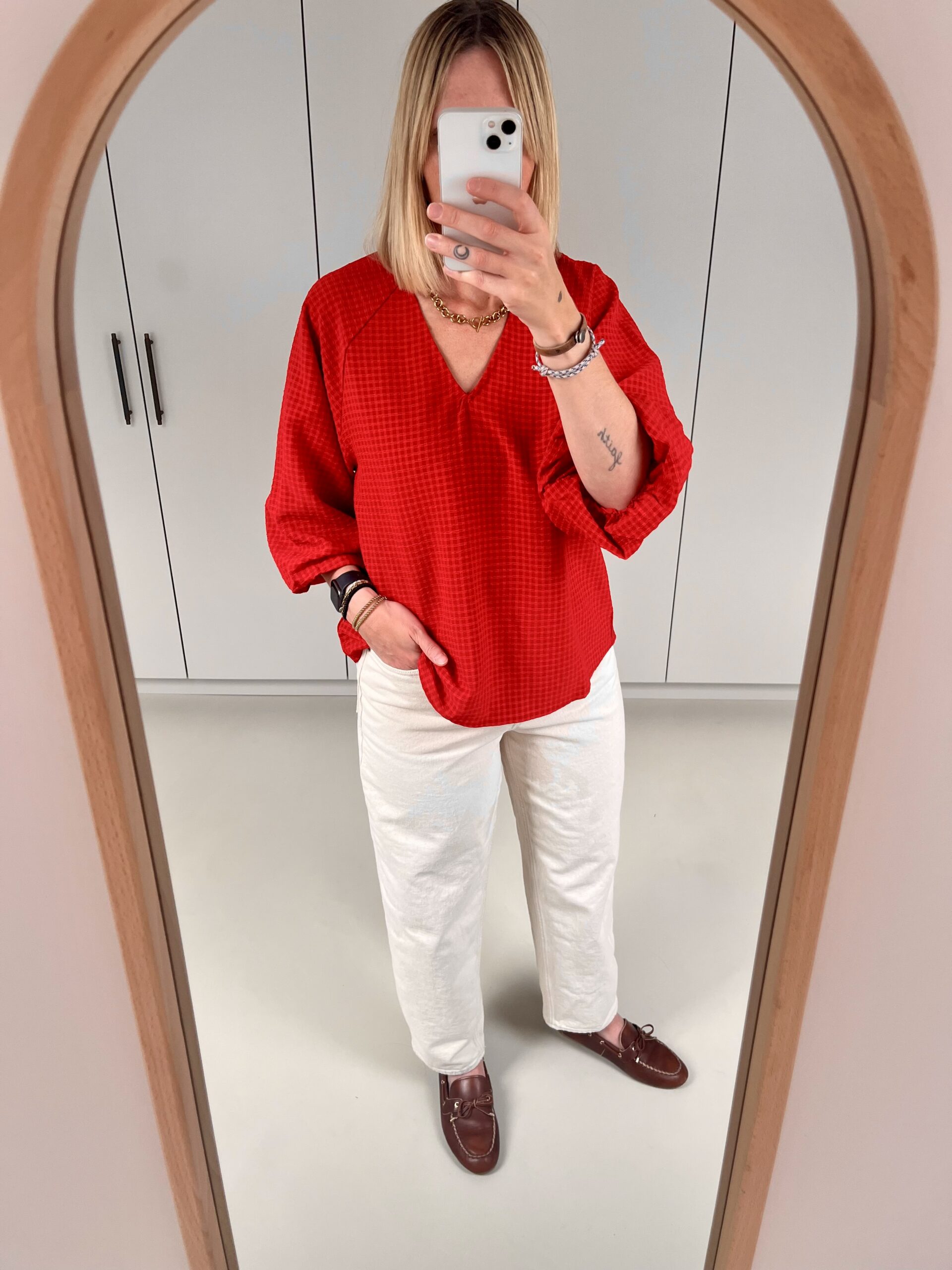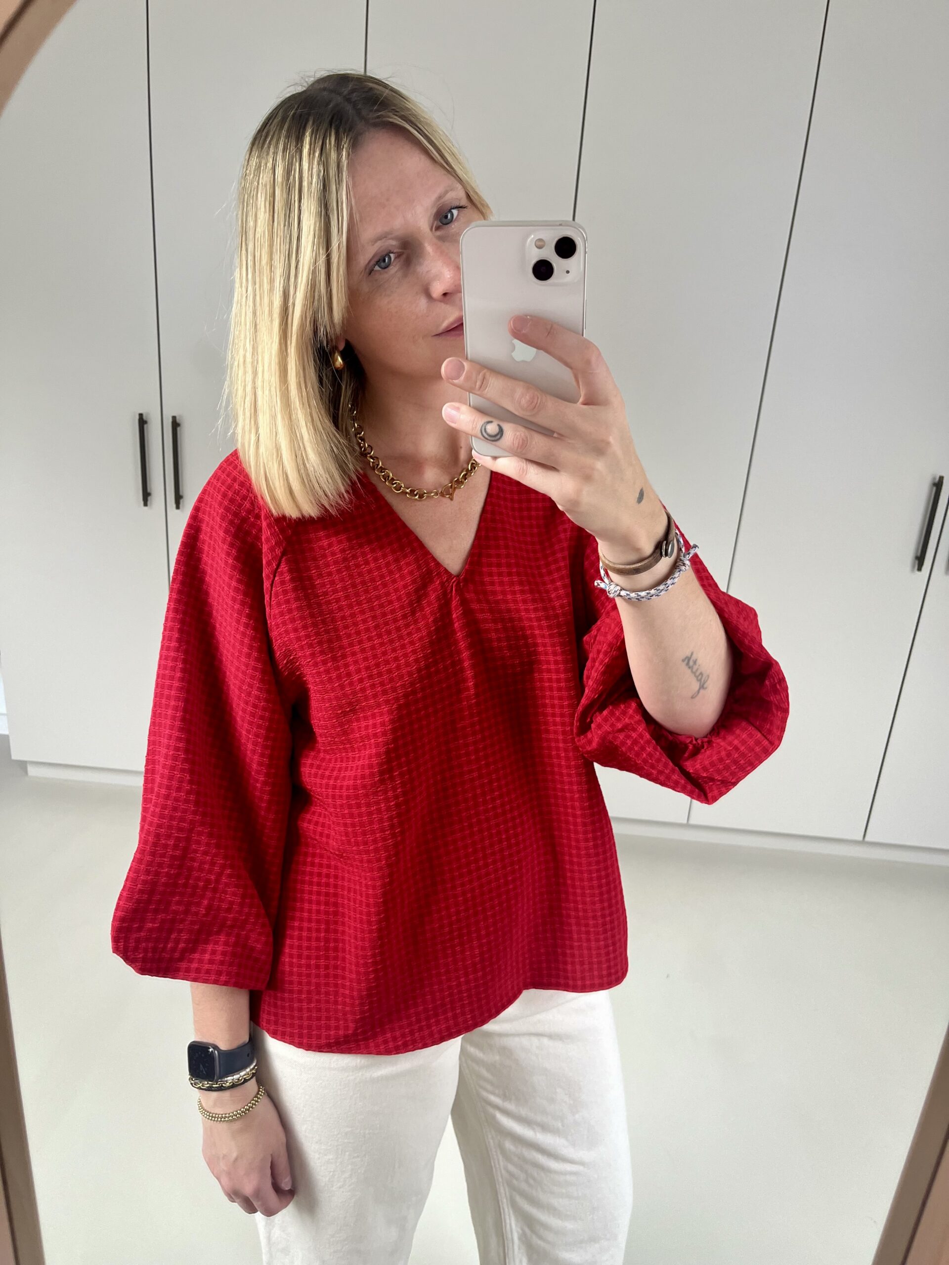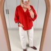 SLFAmida 3/4 V-Neck Top | Red Checks – Selected Femme
